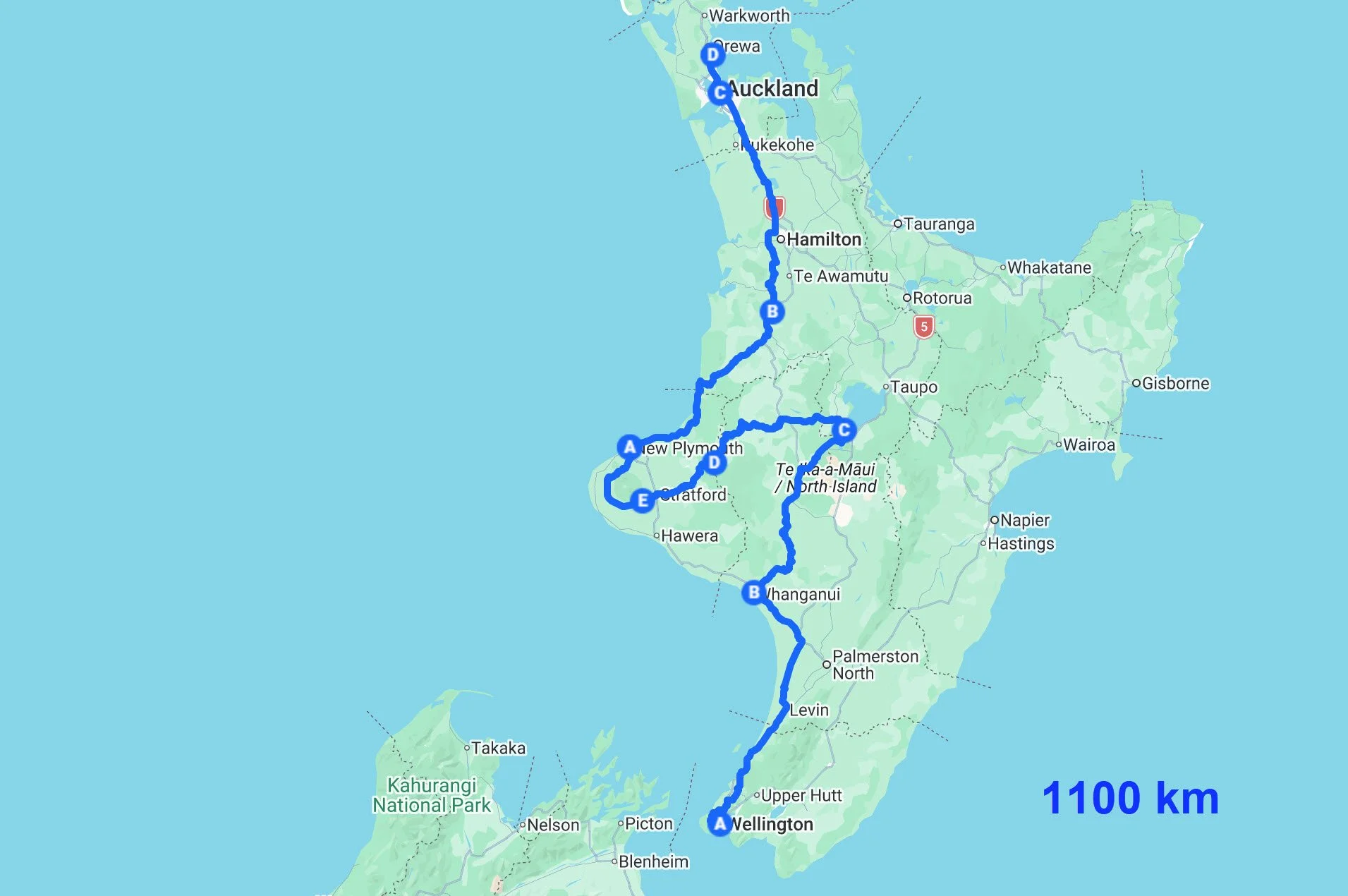 C’est sous un ciel toujours bien chargé que nous partons en direction du Nord, en empruntant tout d’abord une très jolie route étroite qui serpente dans les collines auxquelles Wellington est adossée. La première moitié de l’itinéraire du jour a été très agréable, avec des paysages alternants entre vallées verdoyantes et côte sauvage, avant les derniers 100 kilomètres de voies rapides qui ont été bien monotones. Nous faisons étape pour une nuit à Whanganui qui est une charmante petite ville construite autour du fleuve du même nom.